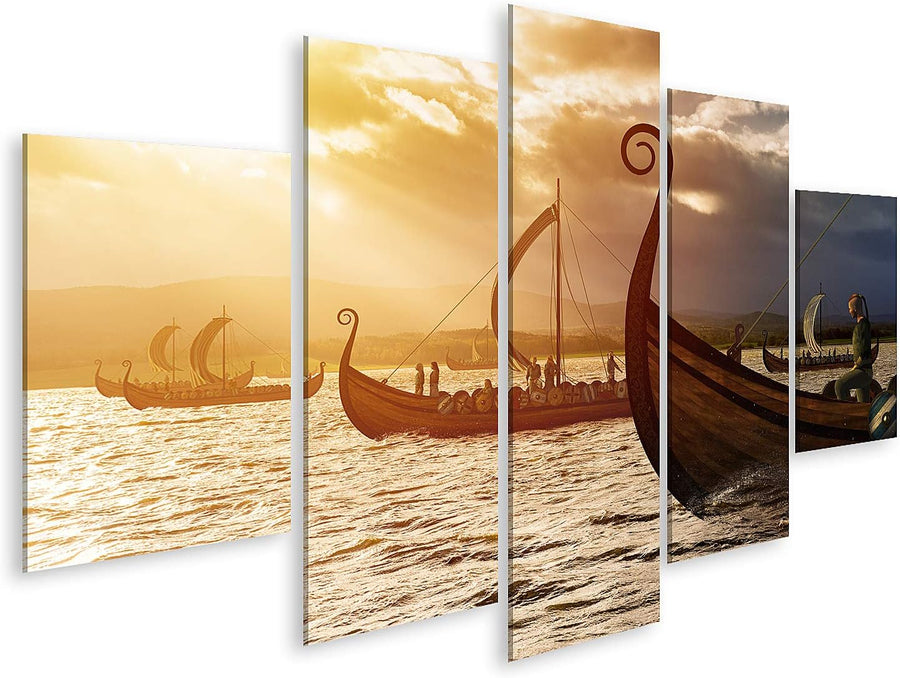 islandburner Bild auf Leinwand Wikingerschiffe 20A Bilder Wandbilder Poster Leinwand 150x80cm - 4 Te