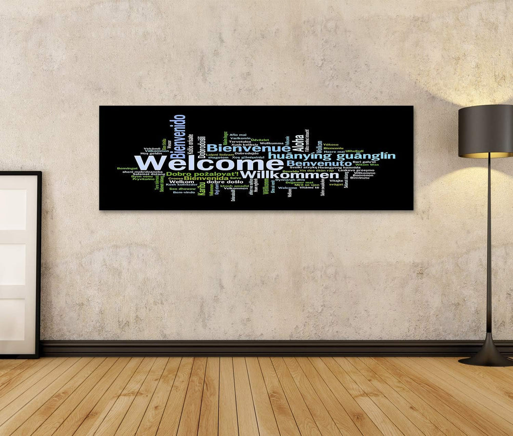 islandburner Bild auf Leinwand Willkommen Welcome Verschiedenen Sprachen Worten Eingangsbereich Haus