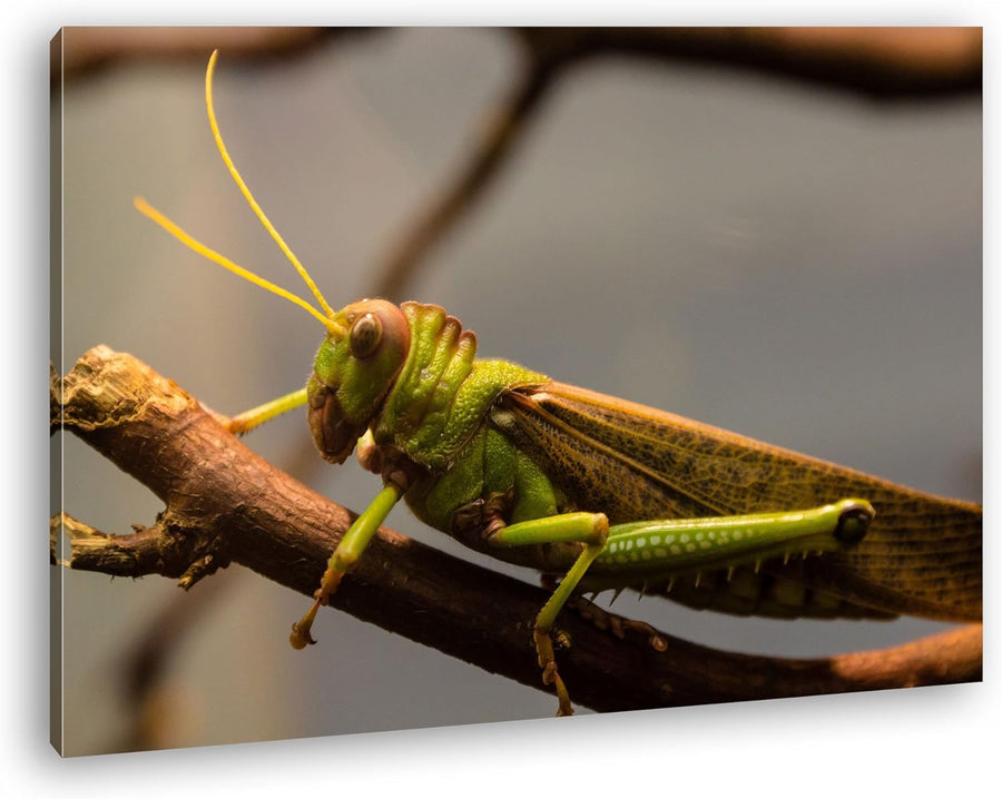 deyoli ruhig sitzende Heuschrecke Format: 80x60 als Leinwandbild, Motiv fertig gerahmt auf Echtholzr