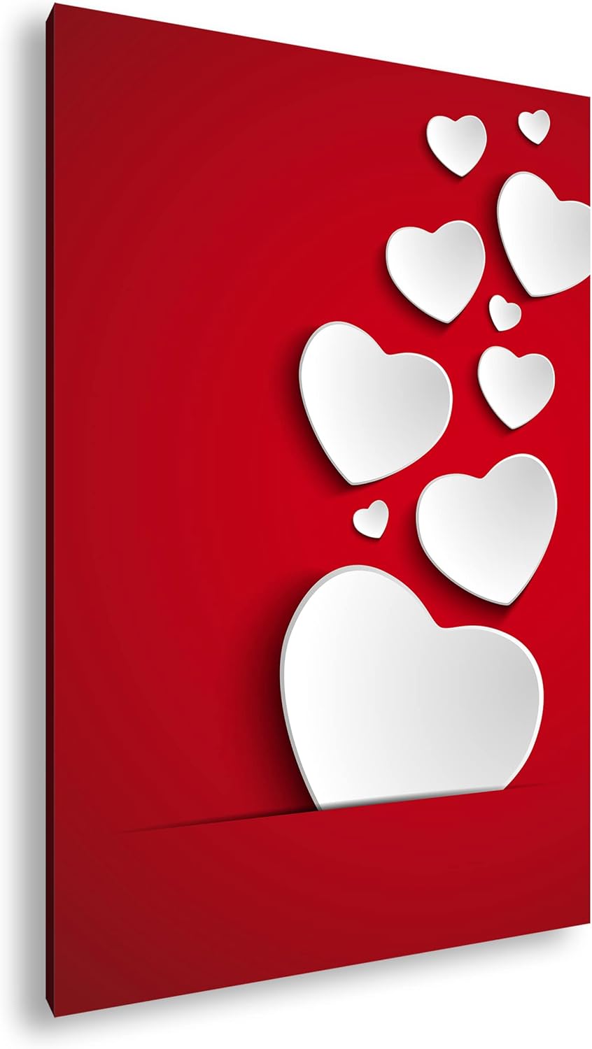 deyoli rubinrote Karte mit weissen Herzen im Format: 80x60 als Leinwandbild, Motiv fertig gerahmt au