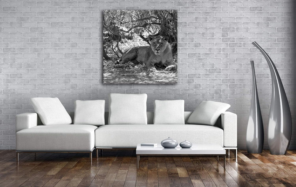 deyoli ruhige Löwin Format: 70x70 Effekt: Schwarz&Weiss als Leinwandbild, Motiv fertig gerahmt auf E