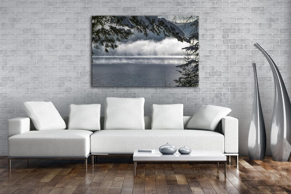 deyoli ruhiger See in Kanada Format: 80x60 als Leinwand, Motiv fertig gerahmt auf Echtholzrahmen, Ho