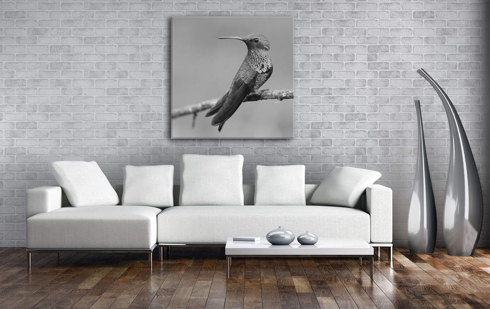 deyoli ruhig sitzender Kolibri Format: 60x60 Effekt: Schwarz&Weiss als Leinwandbild, Motiv auf Echth