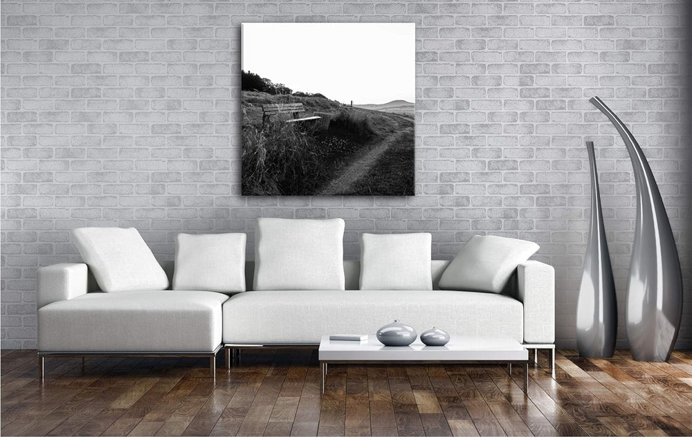 deyoli ruhige Bank am Feldweg Format: 70x70 Effekt: Schwarz&Weiss als Leinwandbild, Motiv fertig ger