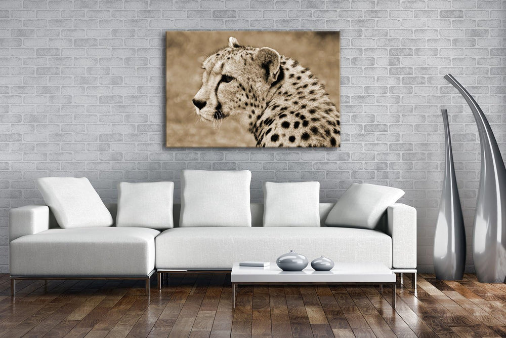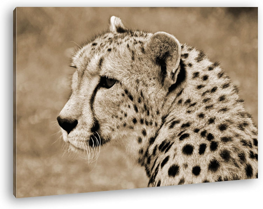 deyoli ruhige Wildkatze Format: 80x60 Effekt: Sepia als Leinwand, Motiv fertig gerahmt auf Echtholzr