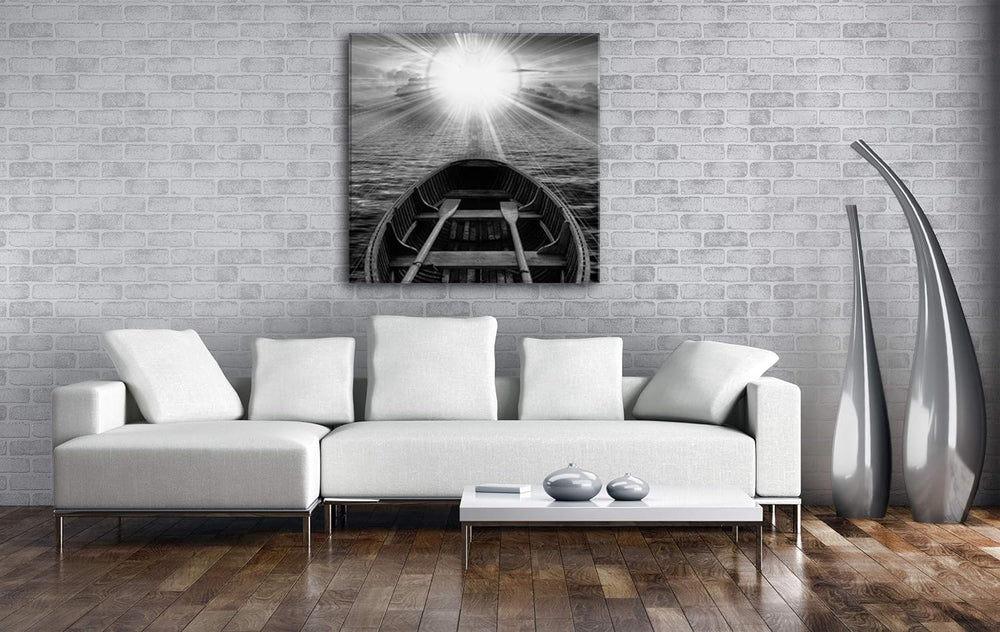 deyoli Ruderboot auf offener See Format: 60x60 Effekt: Schwarz&Weiss als Leinwandbild, Motiv auf Ech