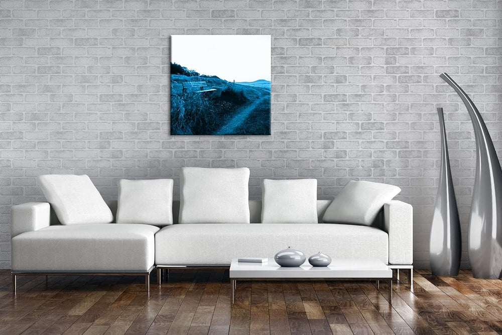 deyoli ruhige Bank am Feldweg Format: 40x40 Effekt: Monocrome Blau als Leinwandbild, Motiv fertig ge