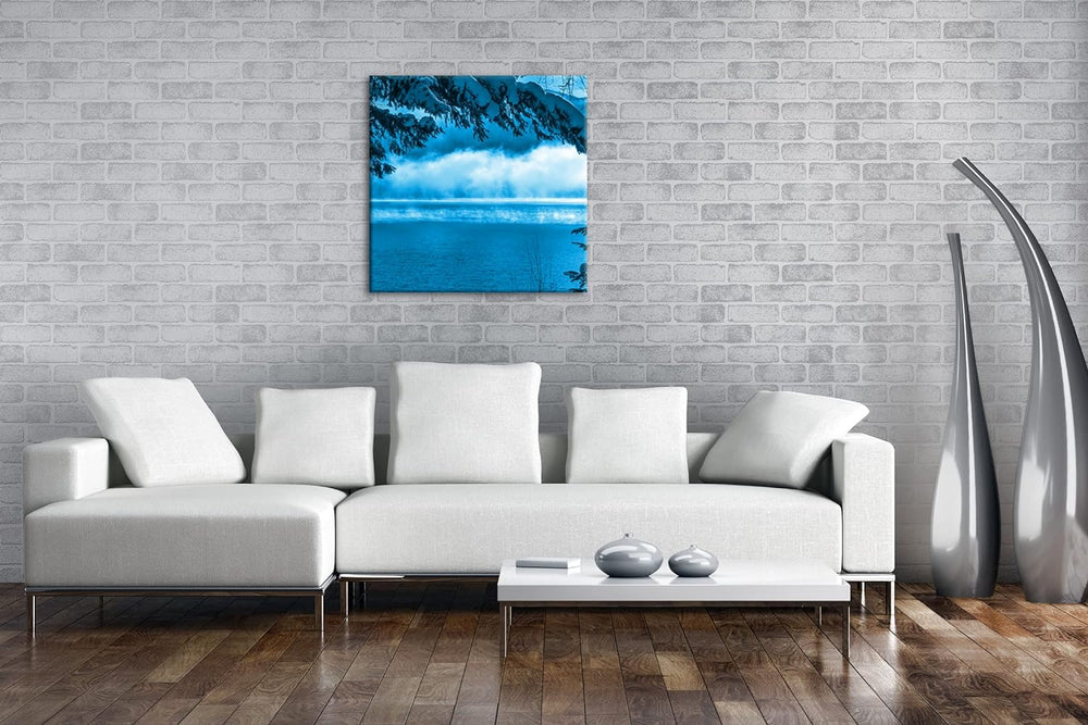 deyoli ruhiger See in Kanada Format: 60x60 Effekt: Monocrome Blau als Leinwandbild, Motiv fertig ger