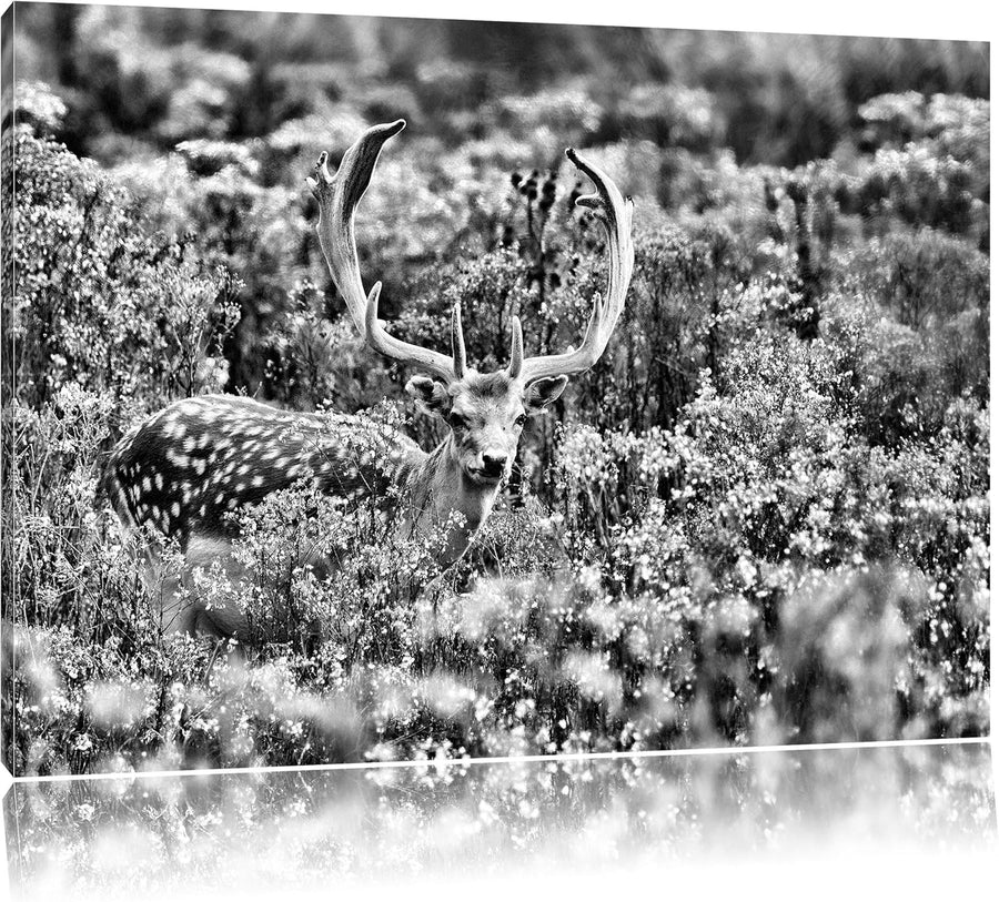 Pixxprint Axishirsch auf Wildwiese / 100x70cm Leinwandbild bespannt auf Holzrahmen/Wandbild Kunstdru