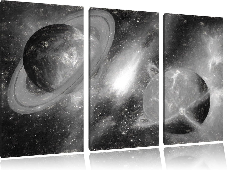 Pixxprint Ausgleich im Weltall Kunst B&W 3-Teiler Leinwandbild 120x80 Bild auf Leinwand