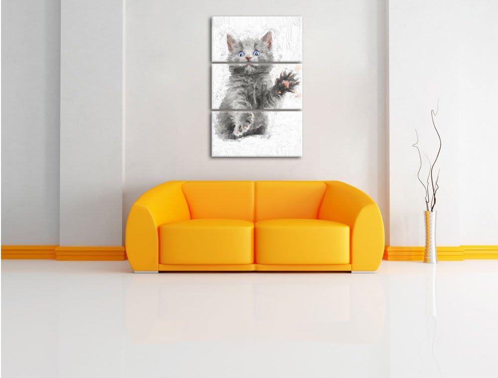 Pixxprint Babykatze die bettelt als Leinwandbild/Grösse: 3 Teilig (120x80) / Wandbild/Kunstdruck/fer