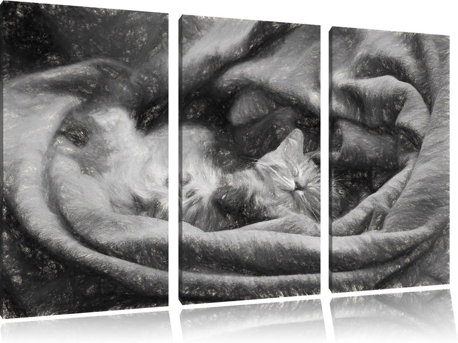 Pixxprint Babykatze als Leinwandbild/Grösse: 3 Teilig (120x80) cm/Wandbild/Kunstdruck/fertig bespann
