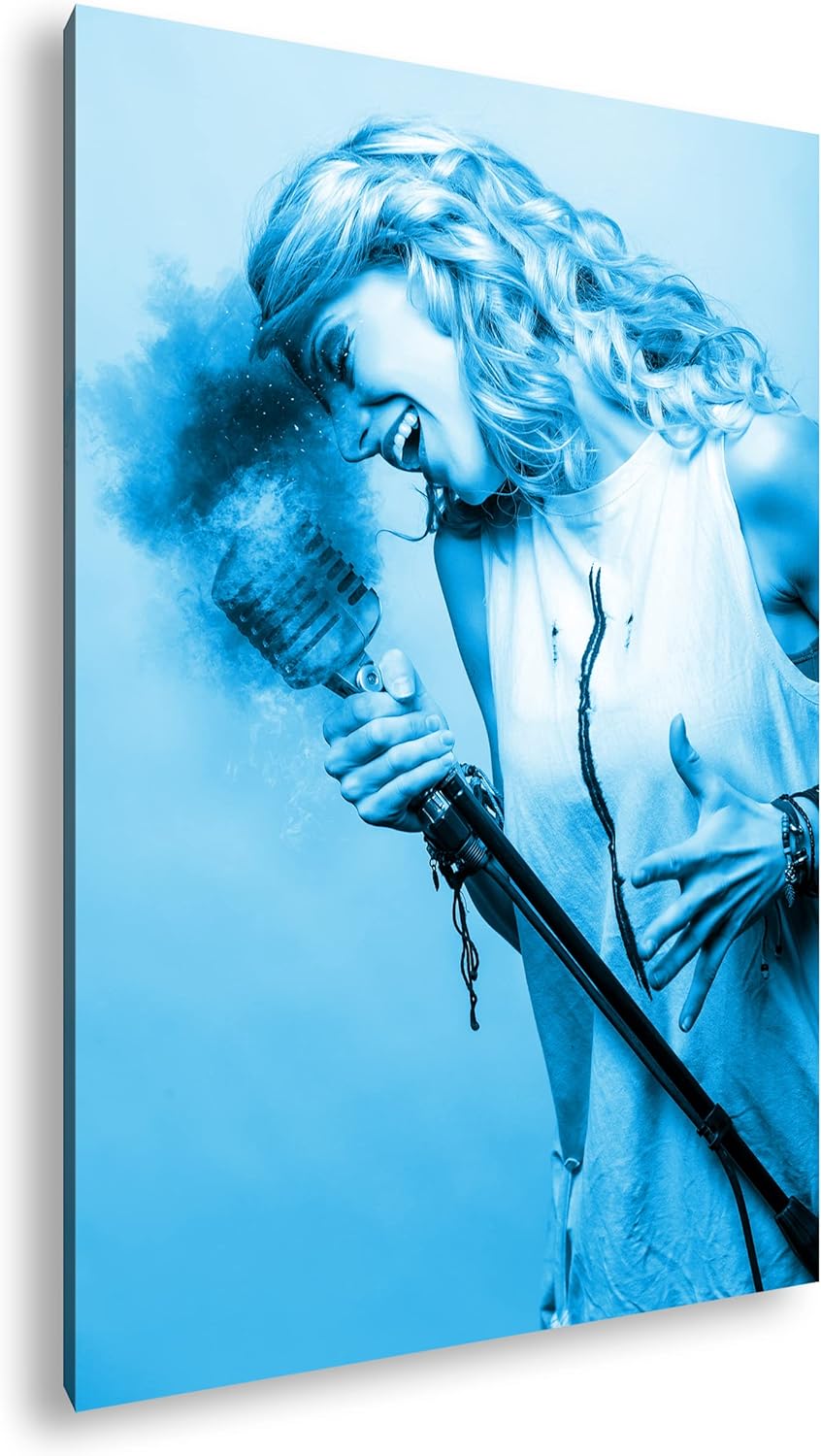 deyoli Sängerin am glühenden Mikrofon Format: 80x60 Effekt: Monocrome Blau als Leinwandbild, Motiv f