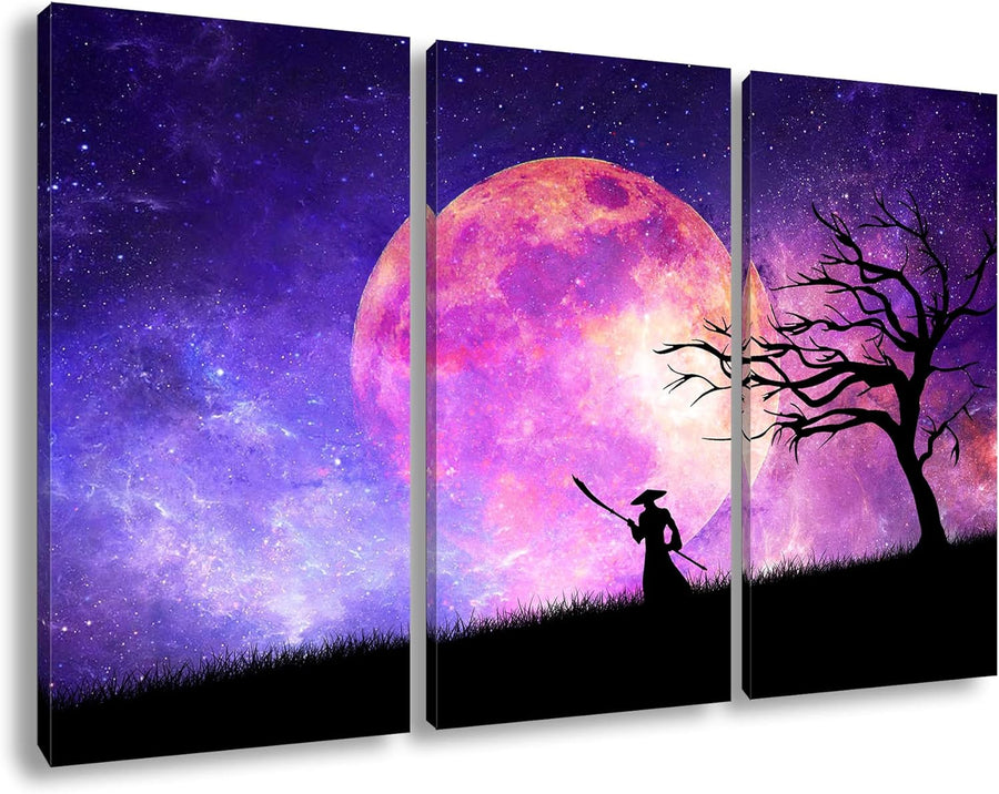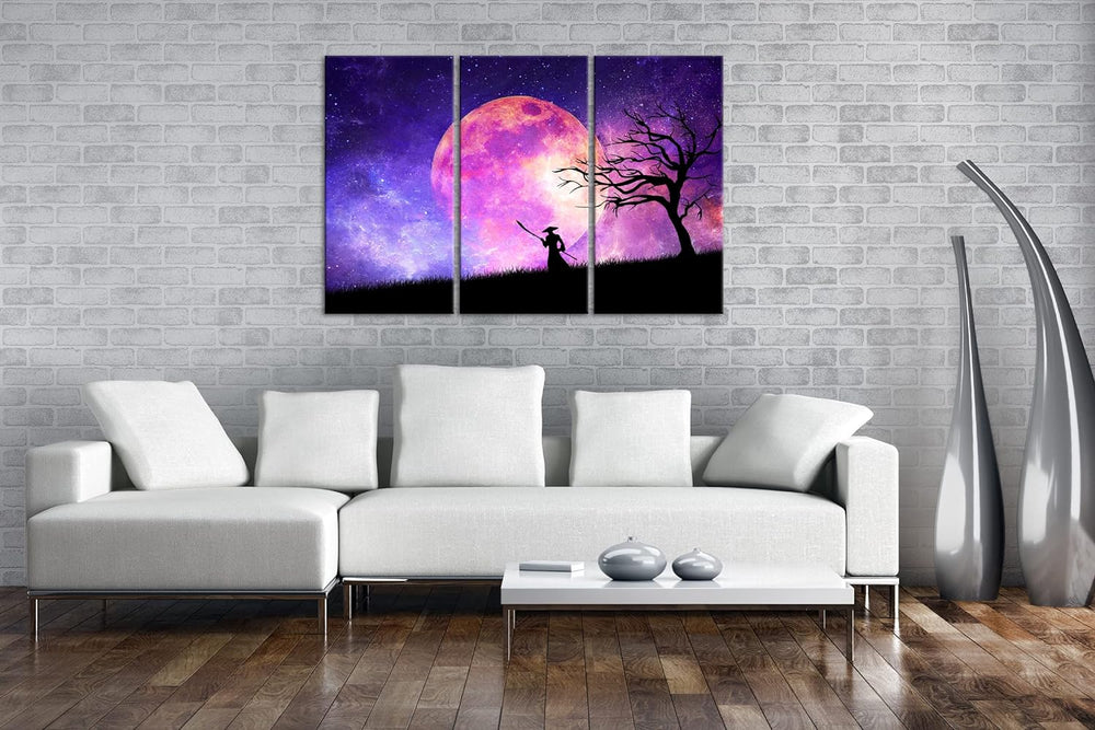 deyoli Samurai im Mondschein Format: 3Teilig als Leinwandbild, Motiv fertig gerahmt auf Echtholzrahm
