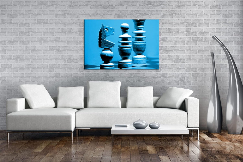 deyoli Schachfiguren auf einem Schachbrett Format 80x60 Effekt: Monocrome Blau als Leinwandbild, Mot