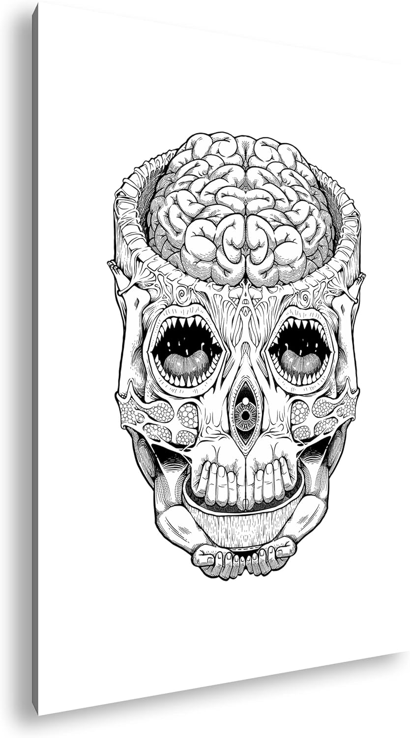 deyoli Schädel Zeichnung Format: 80x60 als Leinwandbild, Motiv fertig gerahmt auf Echtholzrahmen, Ho