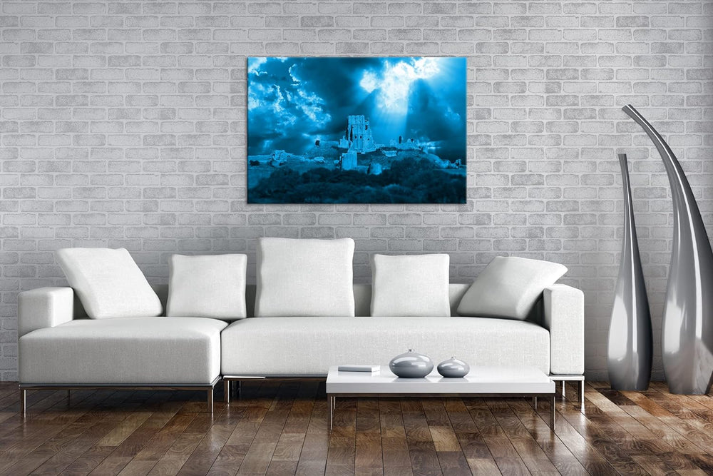 deyoli Ruine einer historischen Burg Format: 120x80 Effekt: Monocrome Blau als Leinwand, Motiv ferti