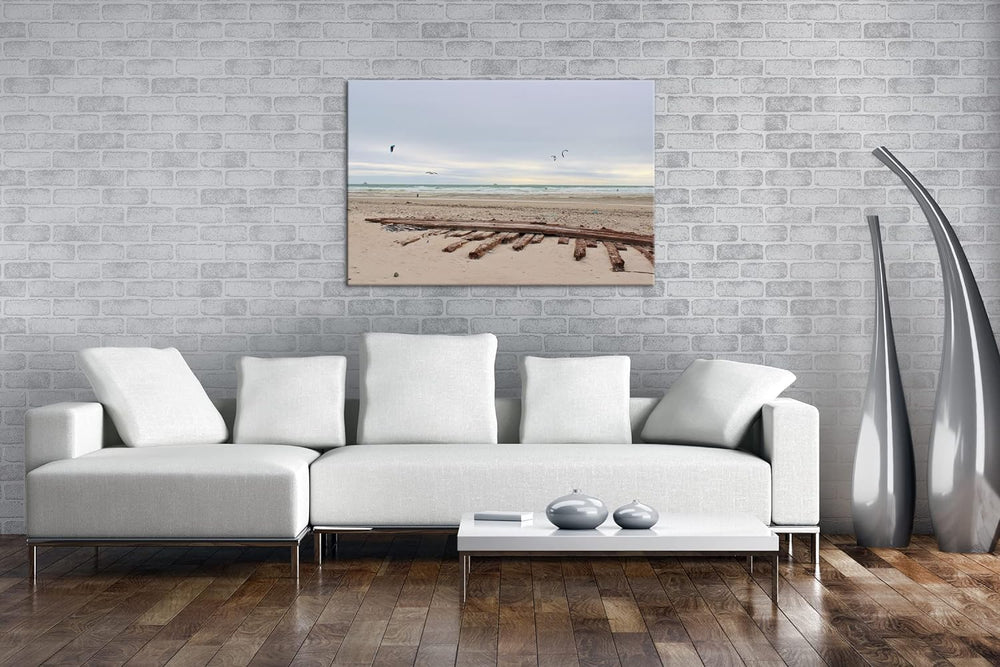 deyoli Sandstrand mit Möwen im Format: 80x60 als Leinwandbild, Motiv fertig gerahmt auf Echtholzrahm