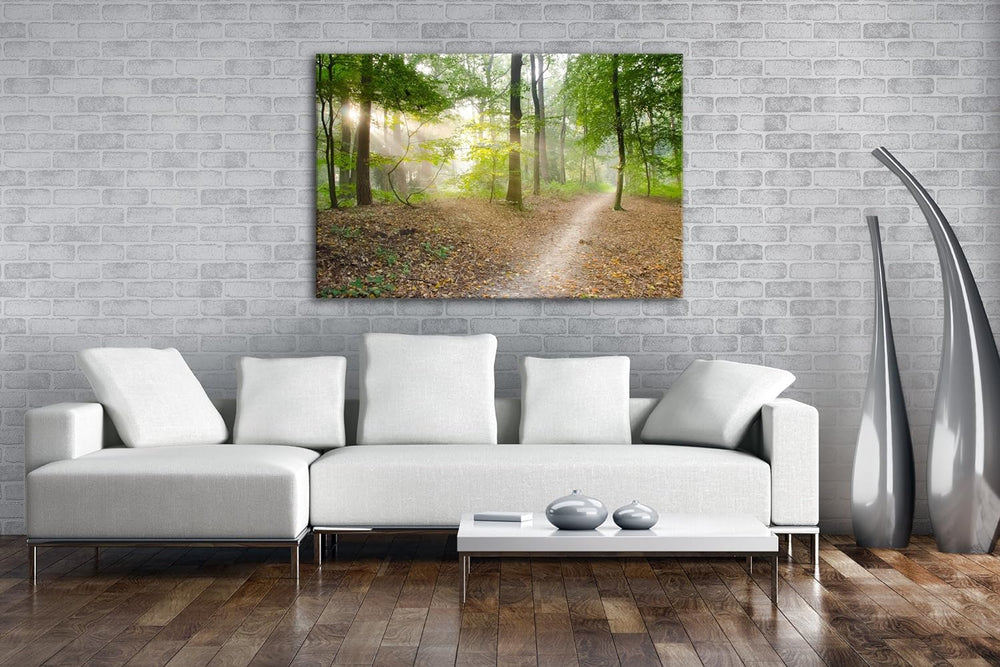 deyoli ruhiger Waldweg Format: 80x60 als Leinwand, Motiv fertig gerahmt auf Echtholzrahmen, Hochwert