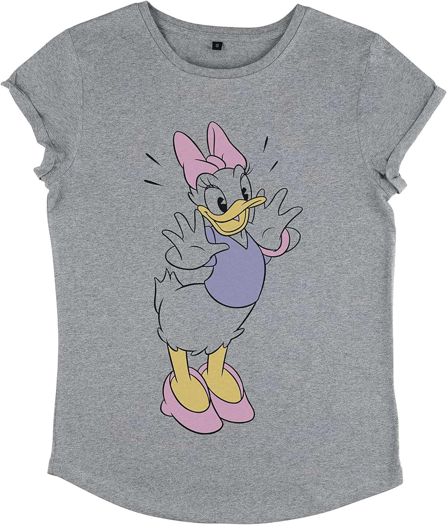 Disney Classics Damen Mickey Classic Vintage Daisy Women's Organic Rolled Sleeve T-Shirt M Melange G