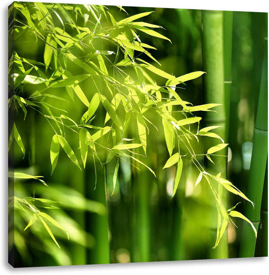 Pixxprint Bambus mit Blättern als Leinwandbild/Grösse: 70x70 cm/Wandbild/Kunstdruck/fertig bespannt,