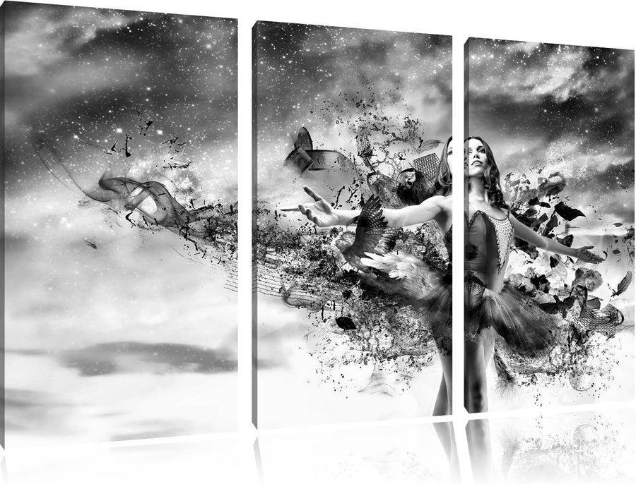 Pixxprint Ballerina im Kleid / 3-Teilig/Gesamtmass 120cm Leinwandbild bespannt auf Holzrahmen/Wandbi