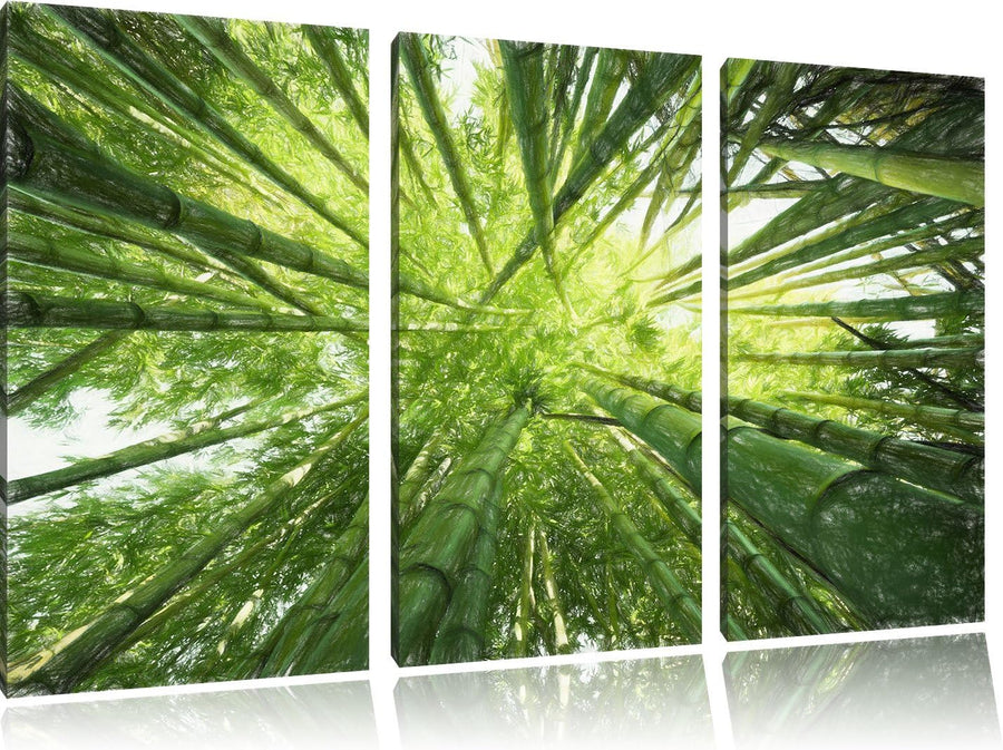 Pixxprint Bambus / 3-Teilig/Gesamtmass 120cm Leinwandbild bespannt auf Holzrahmen/Wandbild Kunstdruc