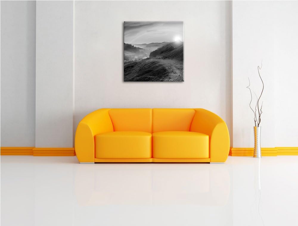 Pixxprint Berge in der Sonne / 100x70cm Leinwandbild bespannt auf Holzrahmen/Wandbild Kunstdruck Dek