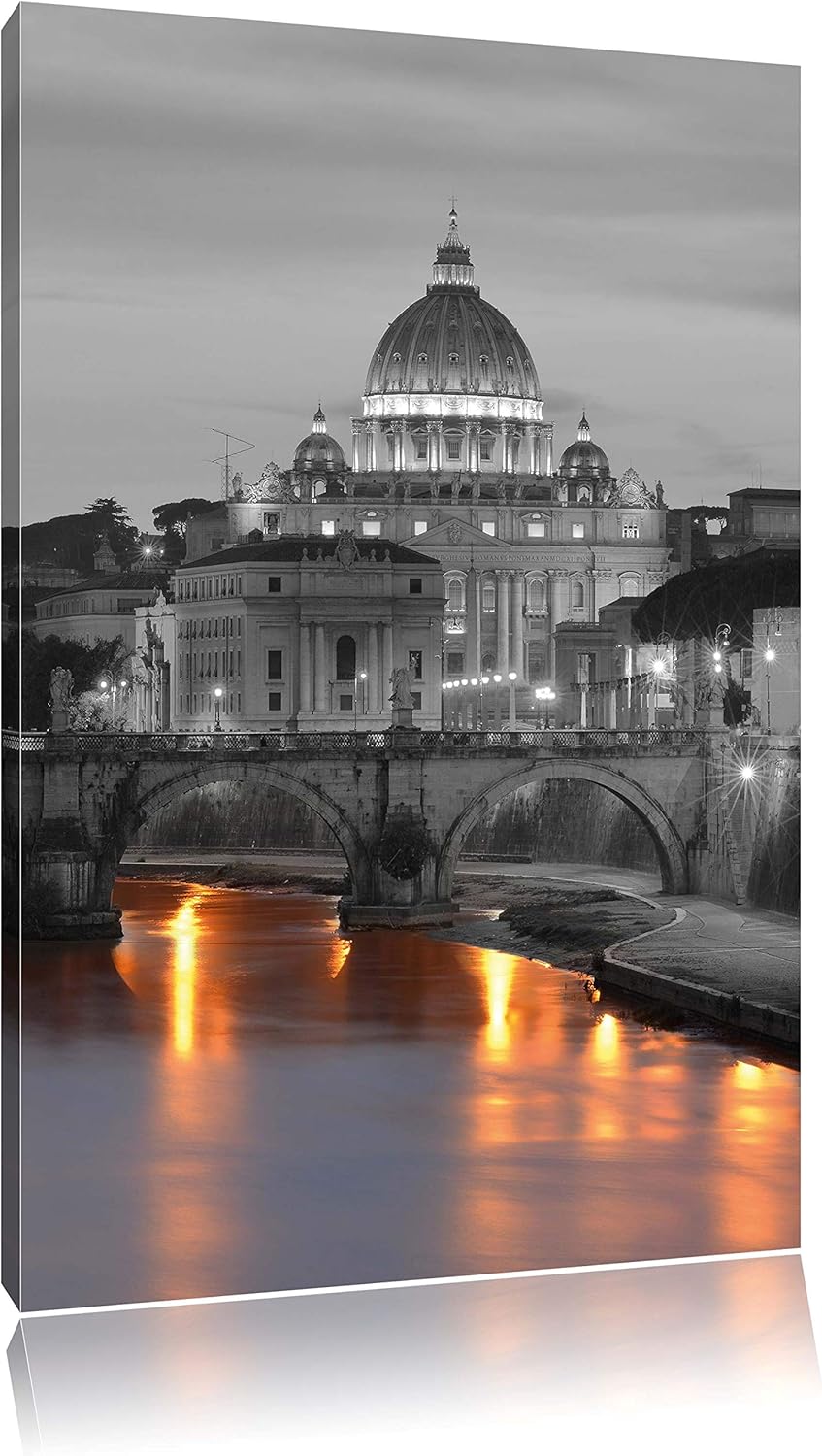 Pixxprint beleuchteter Petersdom am Abend als Leinwandbild/Grösse: 100x70 / Wandbild/Kunstdruck/fert