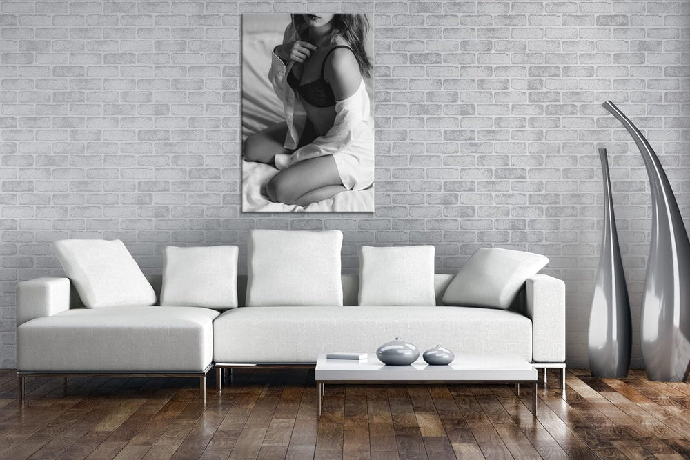 deyoli sexy Frau im Hemd Format:90x60 cm als Leinwandbild, Motiv fertig gerahmt auf Echtholzrahmen,