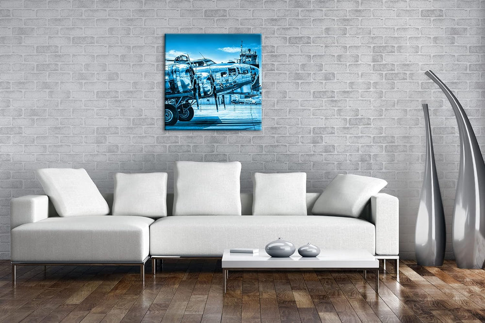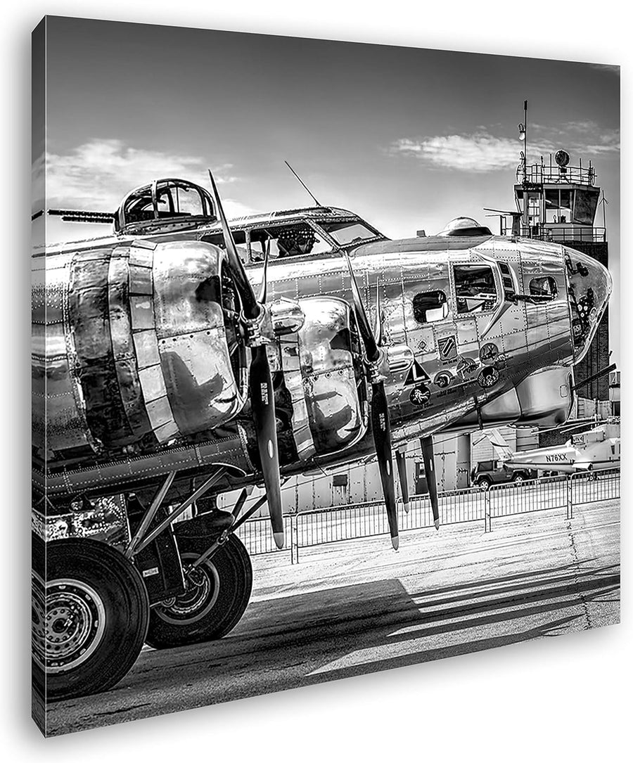 deyoli Silbernes Militär Flugzeug Format: 70x70 Effekt: Schwarz&Weiss als Leinwandbild, Motiv fertig