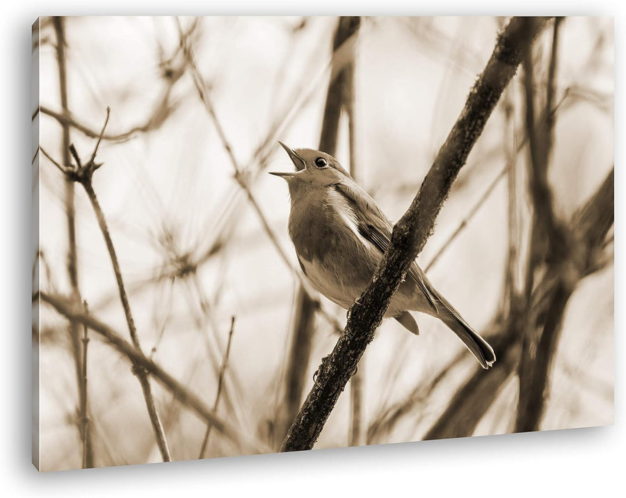 deyoli singendes Rotkehlchen Format: 80x60 Effekt: Sepia als Leinwandbild, Motiv fertig gerahmt auf
