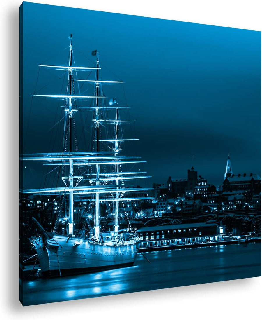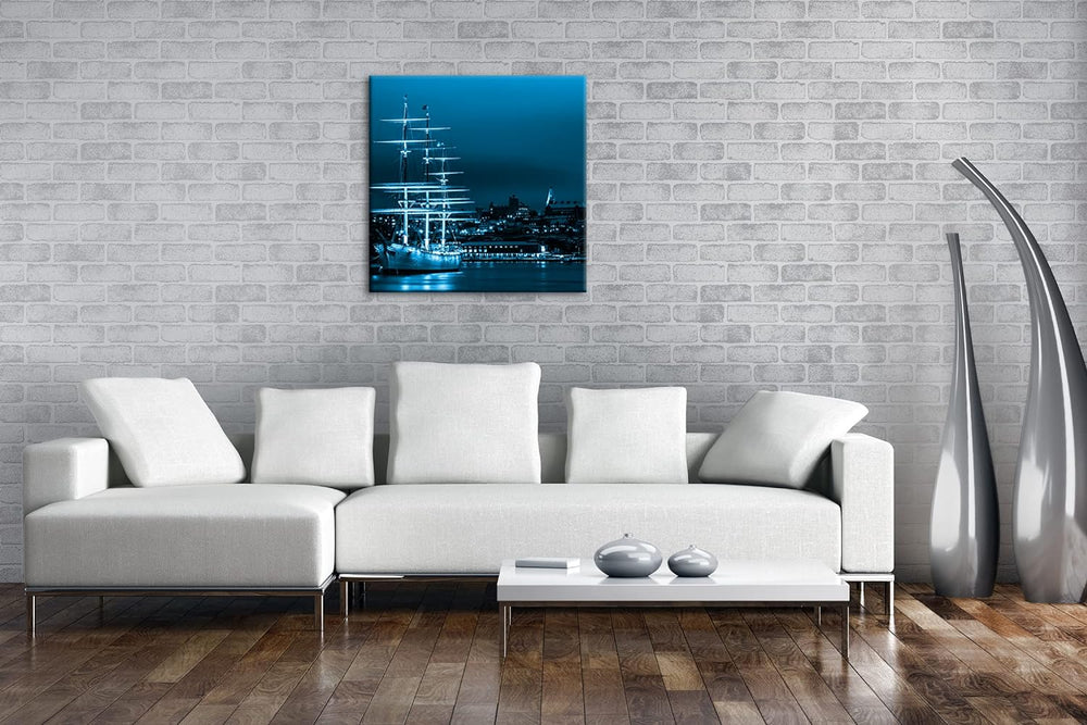deyoli Segelboote im Hafen von Stockholm Format: 70x70 Effekt: Monocrome Blau als Leinwandbild, Moti