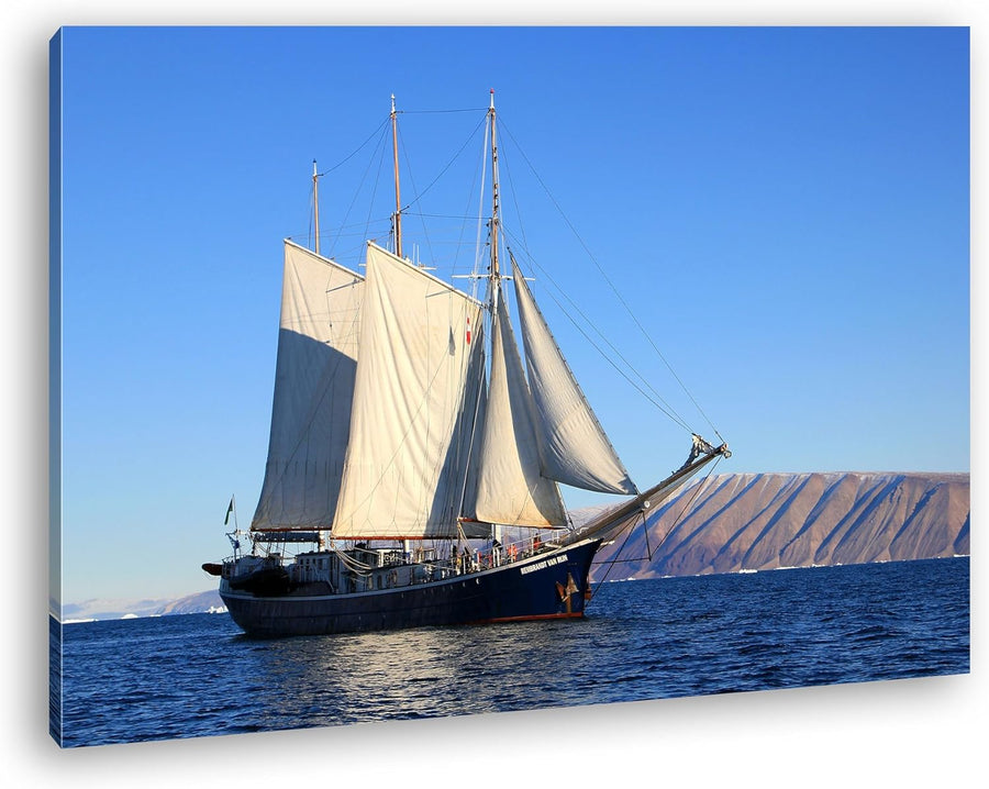 deyoli Segelboot im Gewässer vor Grönland Format: 80x60 als Leinwandbild, Motiv fertig gerahmt auf E