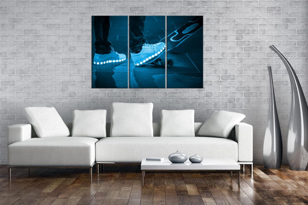 deyoli Skateboardfahrer mit leuchtenden Schuhen Format 120x80 3Teilig Effekt: Monocrome Blau als Lei