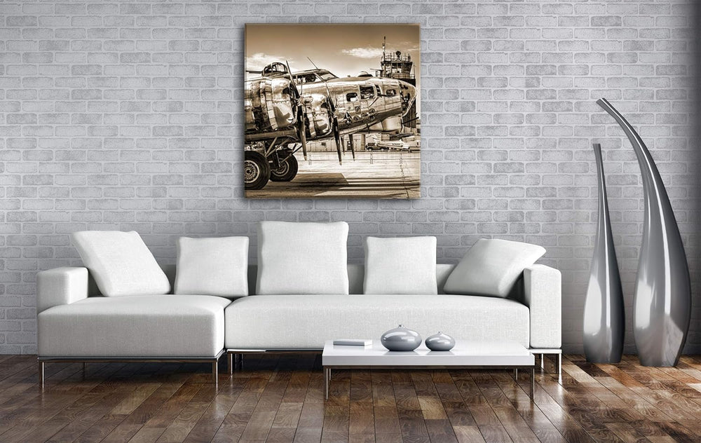 deyoli Silbernes Militär Flugzeug Format: 70x70 Effekt: Sepia als Leinwandbild, Motiv fertig gerahmt