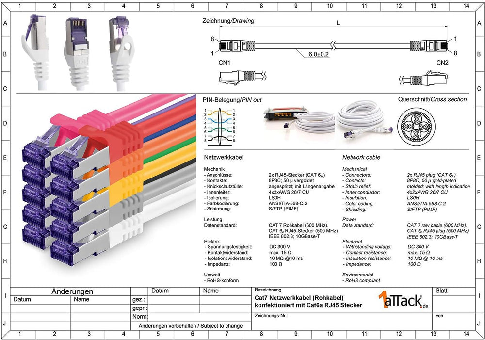 1aTTack.de CAT 7 Verlegekabel Netzwerkkabel CAT.7 LAN Halogenfrei Installationskabel CAT7 Kabel Netz