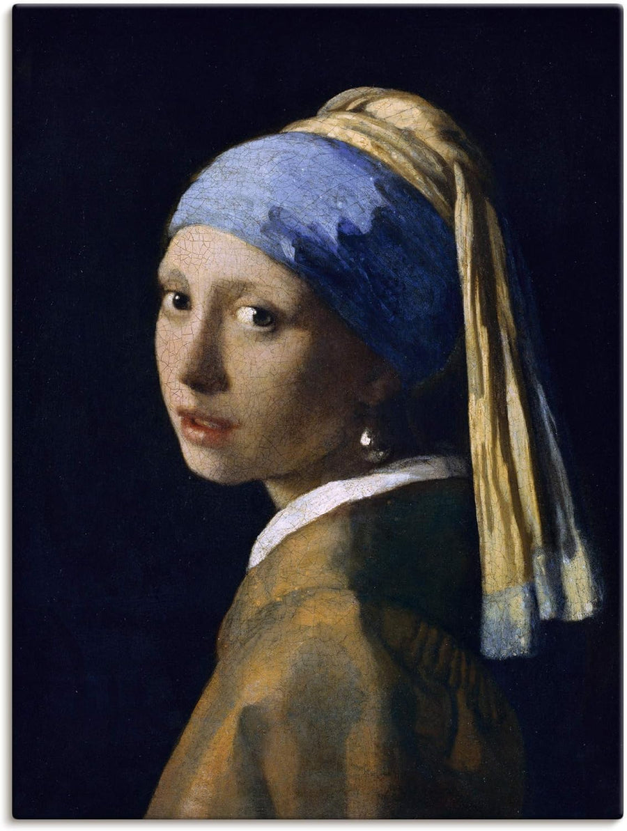 ARTland Leinwandbild Wandbild Bild auf Leinwand 60x80 cm Wanddeko Portrait Frau Schmuck Perlen Das M