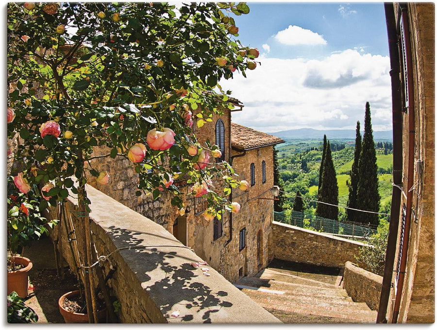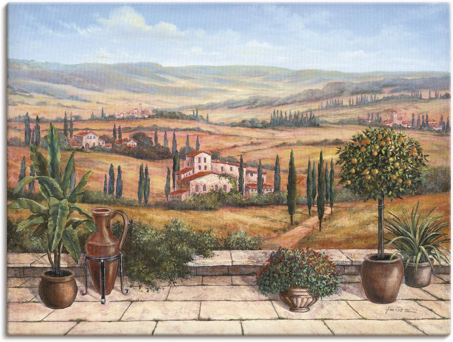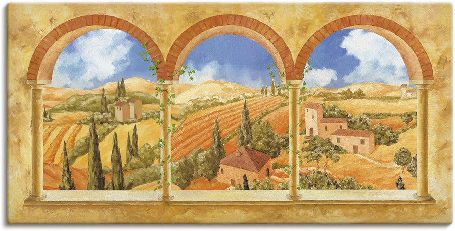 Artland Leinwandbild Wandbild Bild auf Leinwand 60x45 cm Wanddeko Fensterblick Toskana Landschaft Ga