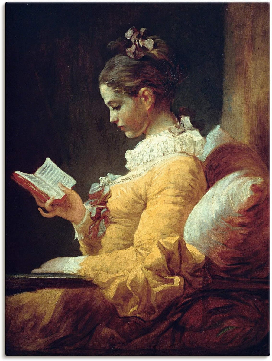 ARTland Leinwandbild Wandbild Bild auf Leinwand 60x80 cm Wanddeko Frau Buch Ruhe Lesendes Mädchen 17