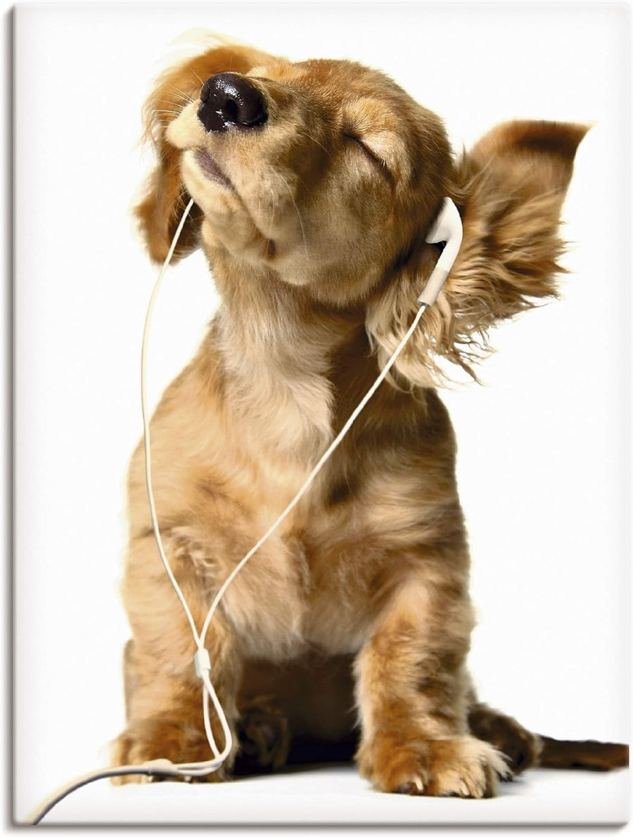 Artland Leinwandbild Wandbild Bild auf Leinwand 60x80 cm Wanddeko Hund Tiere Musik Dackel Welpen Lus