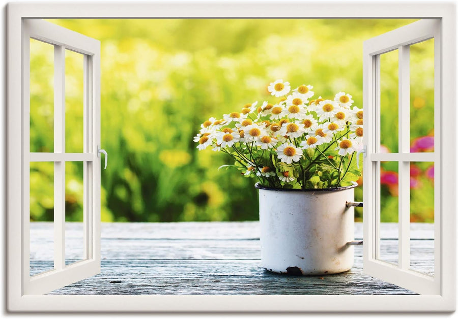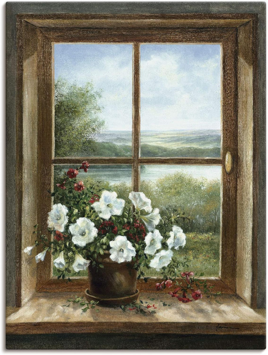 Artland Leinwandbild Wandbild Bild auf Leinwand 60x80 cm Wanddeko Fensterblick Blumen Fenster Landsc