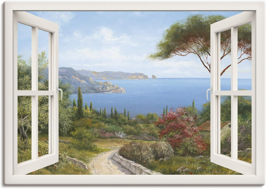Artland Leinwandbild Wandbild Bild auf Leinwand 60x80 cm Wanddeko Fensterblick Fenster zum Paradies