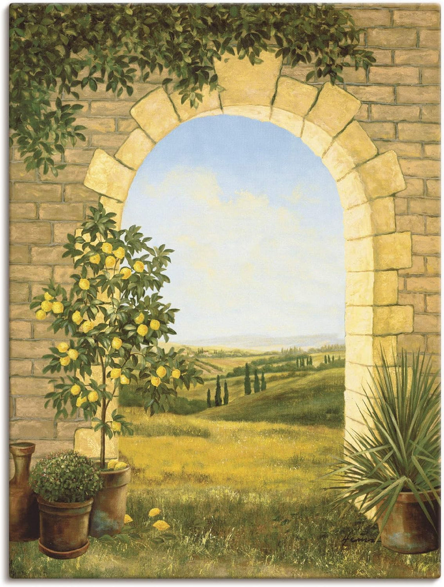 Artland Leinwandbild Wandbild Bild auf Leinwand 60x80 cm Wanddeko Fensterblick Toskana Landschaft It