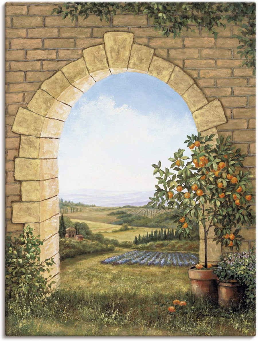 Artland Leinwandbild Wandbild Bild auf Leinwand 60x80 cm Wanddeko Fensterblick Toskana Landschaft Na