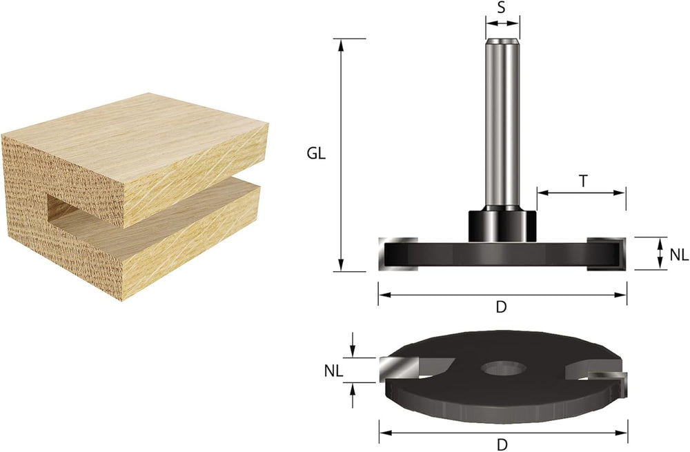ENT 13971 Scheibennutfräser HW, Schaft (S) 8 mm, Durchmesser (D) 40 mm, NL 3 mm, ØKL 19 mm, T 10,5 m