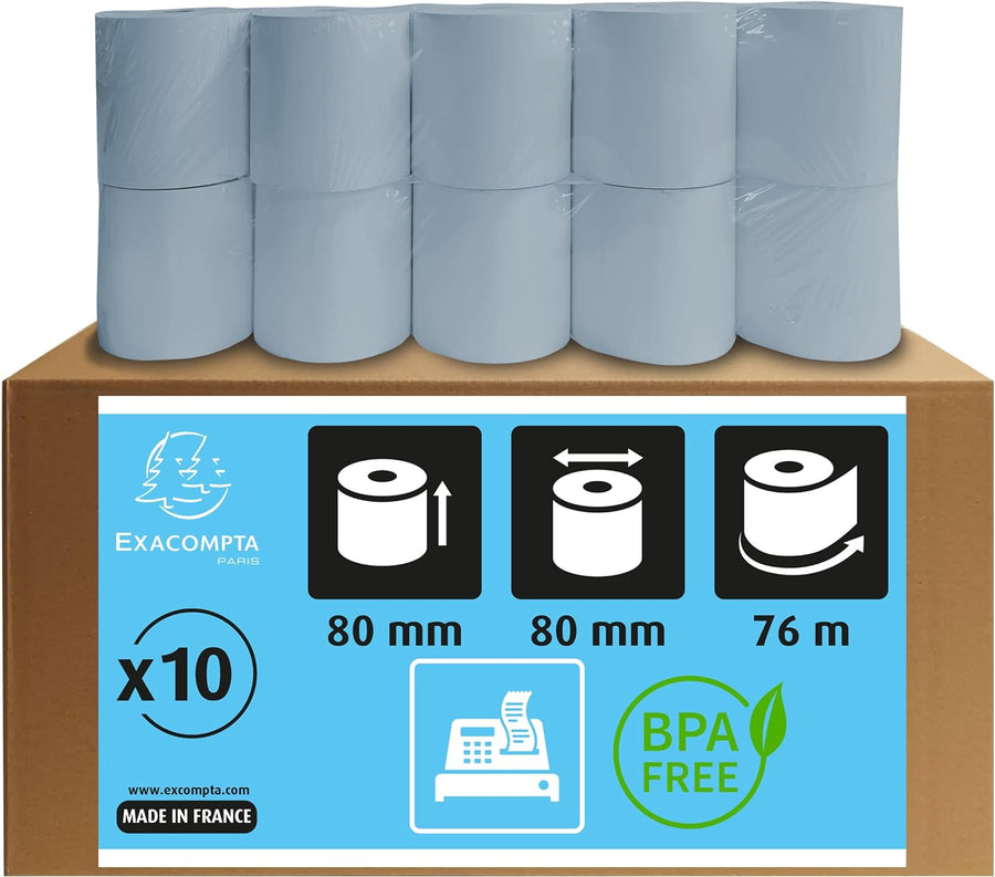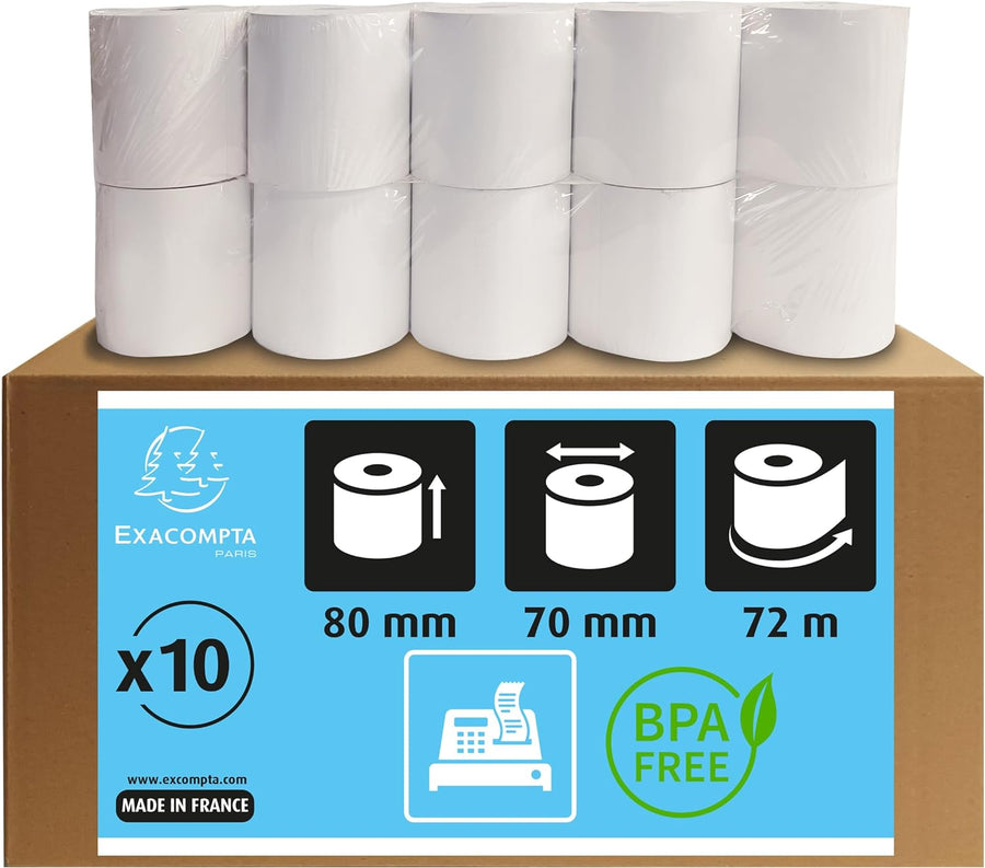 Exacompta 43706SE 10er Pack Thermopapierrollen 1-lagig, Breite: 80mm, Länge 72m, Durchmesser Kern: 1