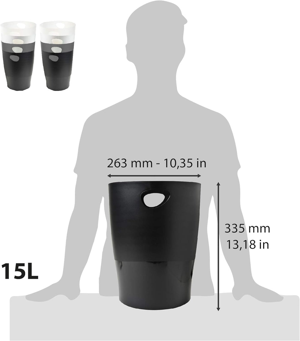 Exacompta 45319D ECOBIN 8er Pack Papierkörbe 15 Liter mit Griffen. Eleganter und robuster Papierkorb