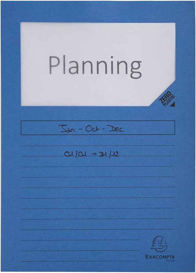 Exacompta 50109E Fenstermappen Packung, 100 Stück, mit Organisationsdruck aus Recycling-Karton 120 g