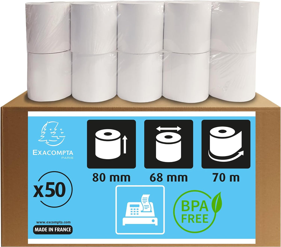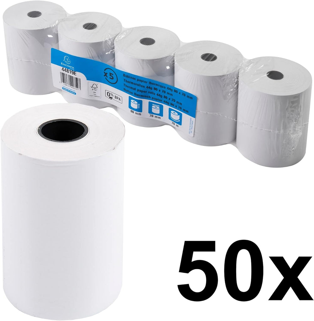 Exacompta 44819E 50er Pack Thermopapierrollen 1-lagig, Breite: 80mm, Länge 70m, Durchmesser Kern: 12